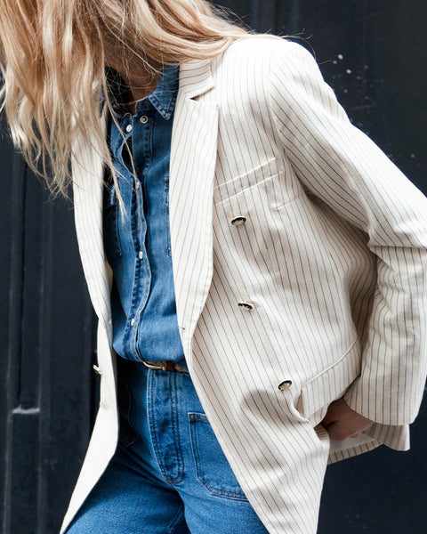Pas besoin de choisir entre look formel ou casual: superposer une chemise en denim sous un blazer en laine et ajouter un pantalon taille haute permet de jongler subtilement avec les styles. L’objectif est d’obtenir un rendu personnel et harmonieux, qu’il s’agisse d’affirmer une autorité naturelle ou d’apporter une touche créative à sa silhouette.