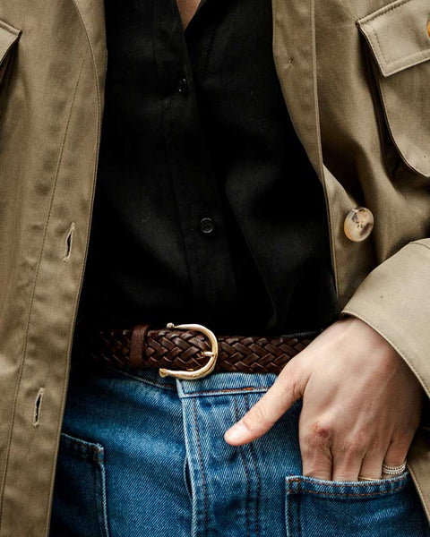 En Cuir tressé chocolat