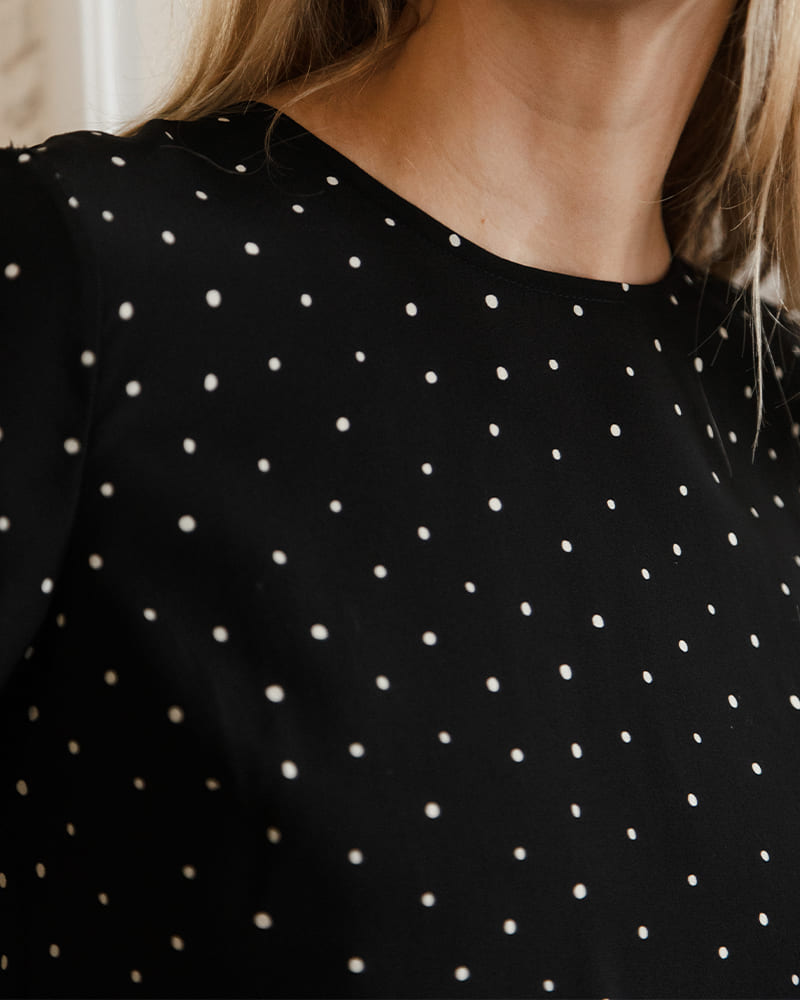 Nouvel imprimé pois de la saison, à porter en toutes occasions. La matière a été faite chez notre partenaire italien spécialiste de la soie: base de prêt à teindre zéro gâchis et l'impression réglementée REACH.