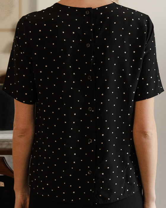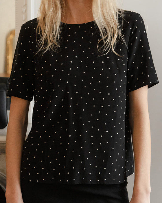 Jack is the silk versionof our iconic Jacques t-shirt, Jack is buttoned all the way down the middle of the back for easy on and off. A beautiful iconic edition, to adopt in ourpolka dots print in 100% silk crepe de chineto wear it without getting tired of it.