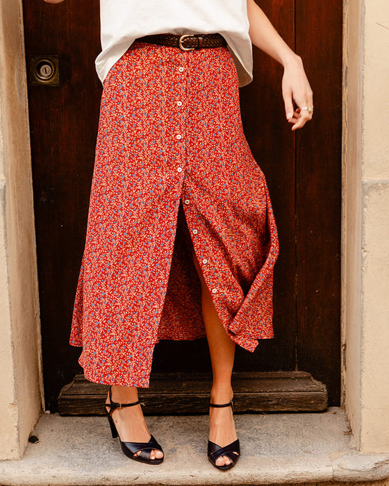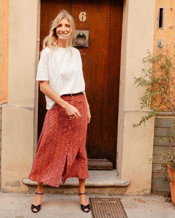 OURinfinitely sexy midi skirt perfect for all body types.A timeless piece to wear on all occasions, ina fabulous silk crepe de chineREACH-certified zero-waste mat. Our new "Fleurette" print designed exclusively by illustrator @foxinthesnow.
