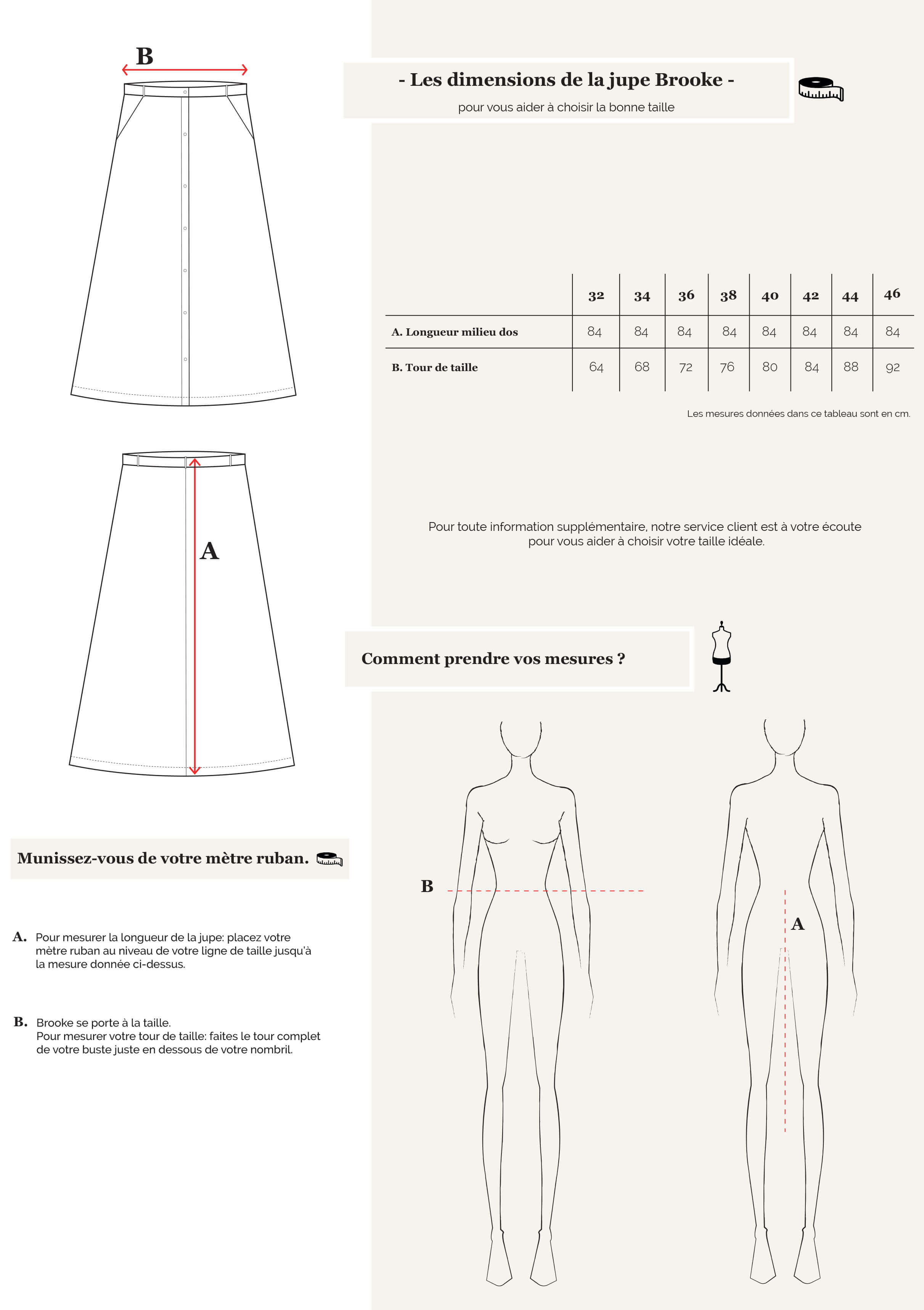 Pour mesurer votre tour de taille: faites le tour complet de votre buste juste en dessous de votre nombril.