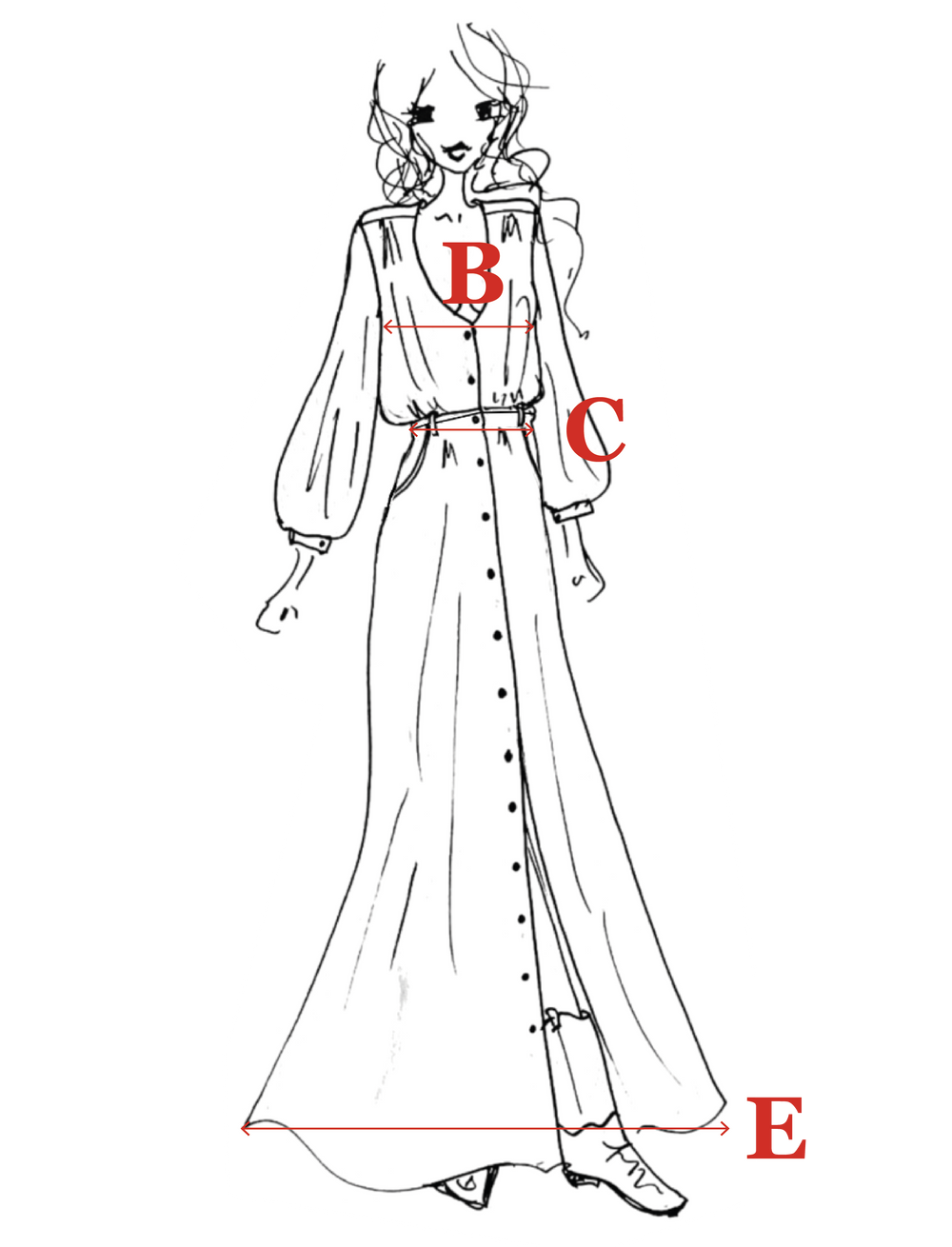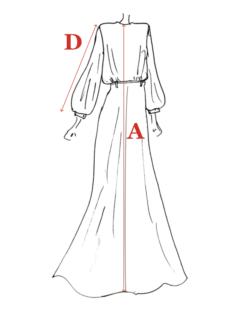 Robe longue - encolure ronde - pince poitrine - découpe taille avec passants - poches côtés - ouverture milieu devant avec boutons - ouverture milieu dos bouton et zip - manches longues au poignet- longueur milieu dos: 140cm