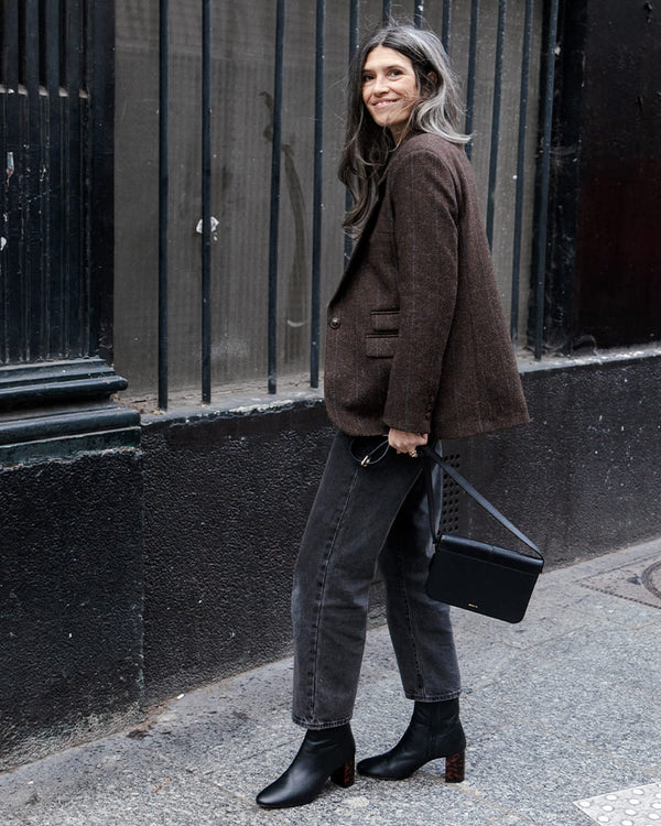 By betting on astraight cutWe favor adaptability: on a white t-shirt, it evokes a casual feel, while with an elegant blouse and matching trousers, the silhouette instantly becomes sophisticated.textureThis blazer plays a strong role; its herringbone wool captures light differently depending on the environment, always bringing that little extra something so sought after in a demanding wardrobe.