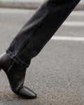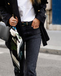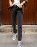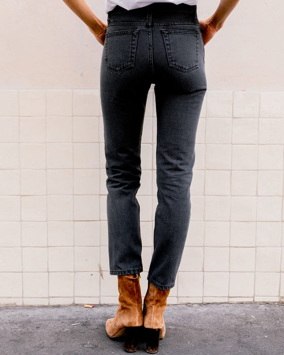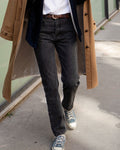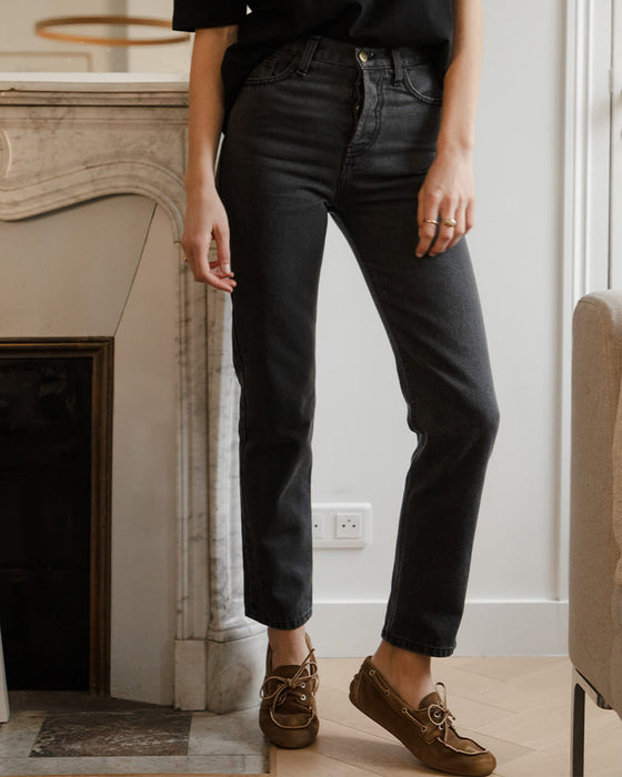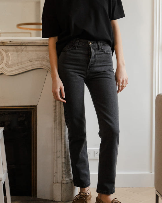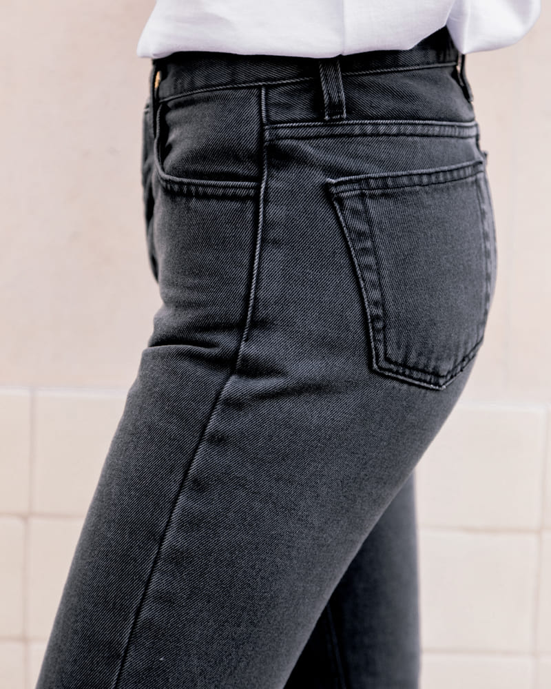Our new straight jeans, with a perfectly structured cut, is draped in agray denim canvasin twill100% cotton, thick and stretch-free — because there's nothing chicer.