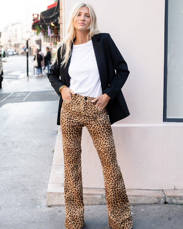 Notre pantalon taille haute et évasé, inspiré des années 70's fait son retour dans notre imprimé léopard iconique chez Mister k, déniché chez notre fournisseur italien préféré. Sa coupe unique : dessinée par Charlotte, et notre atelier de confection. Ariane sera confectionné en Pologne.