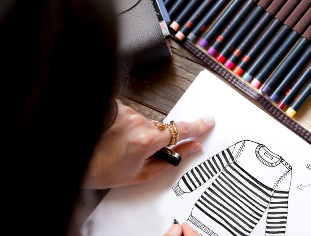 Charlotte , la fondatrice, dessine tous les modèles et choisit chaque matière avec attention, grâce à sa formation de styliste diplomée du Studio Berçot. Ensuite, vient le tour de Jean-Michel notre modéliste préféré, qui développe tous nos toiles et patronages à Paris.
