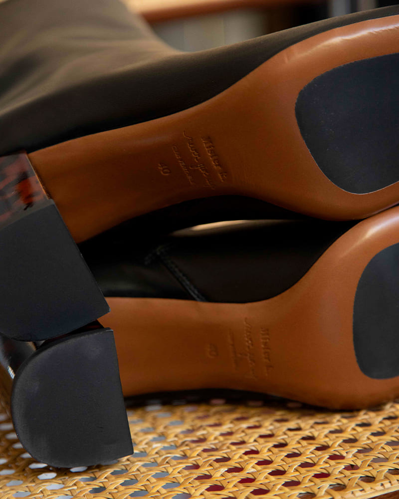 Imaginée par Charlotte et mise au point avec soin dans notre atelier partenaire au Portugal, Roxane a été pensée dans les moindres détails. Nous avons travaillé longuement la finition de son talon et choisi la hauteur idéale.