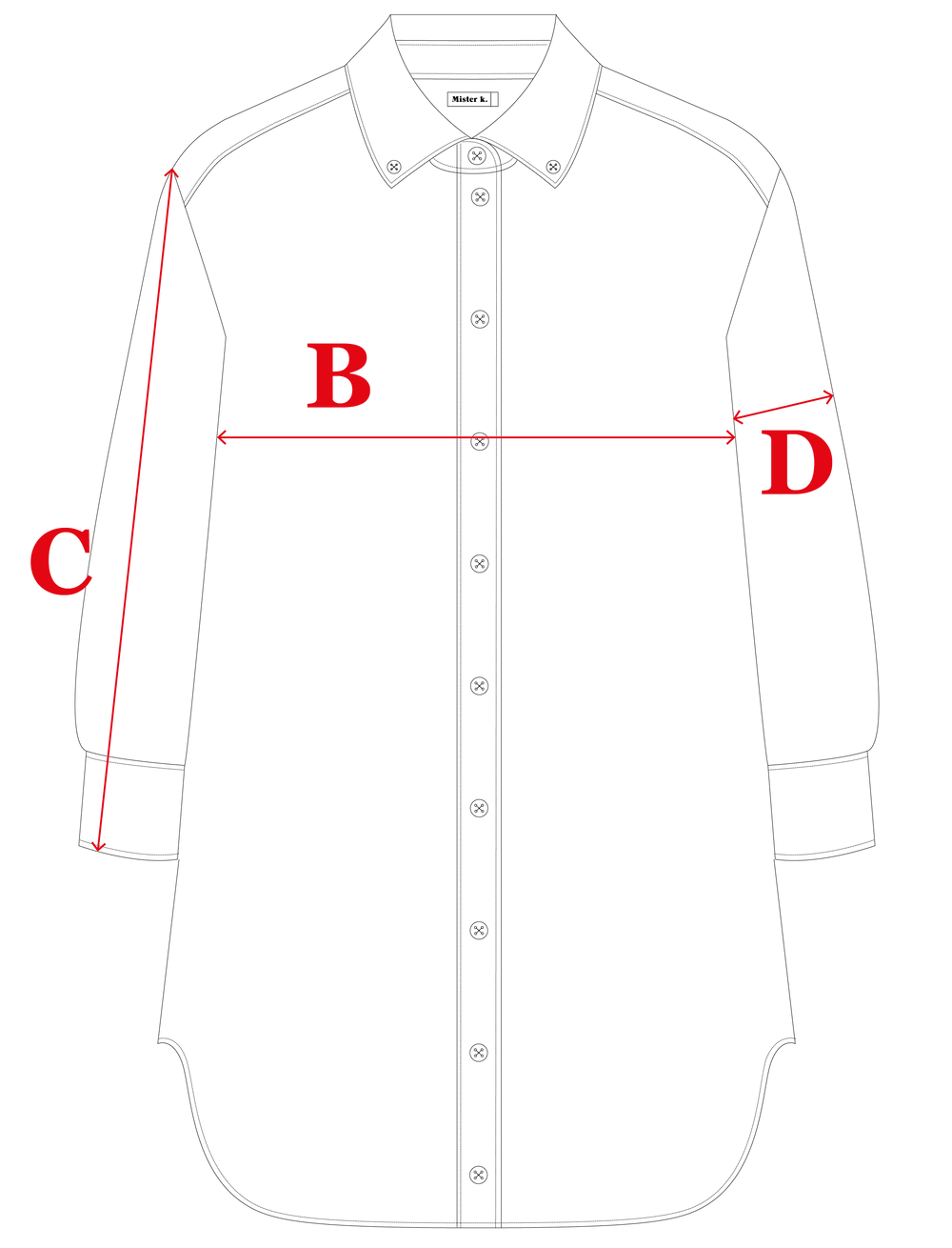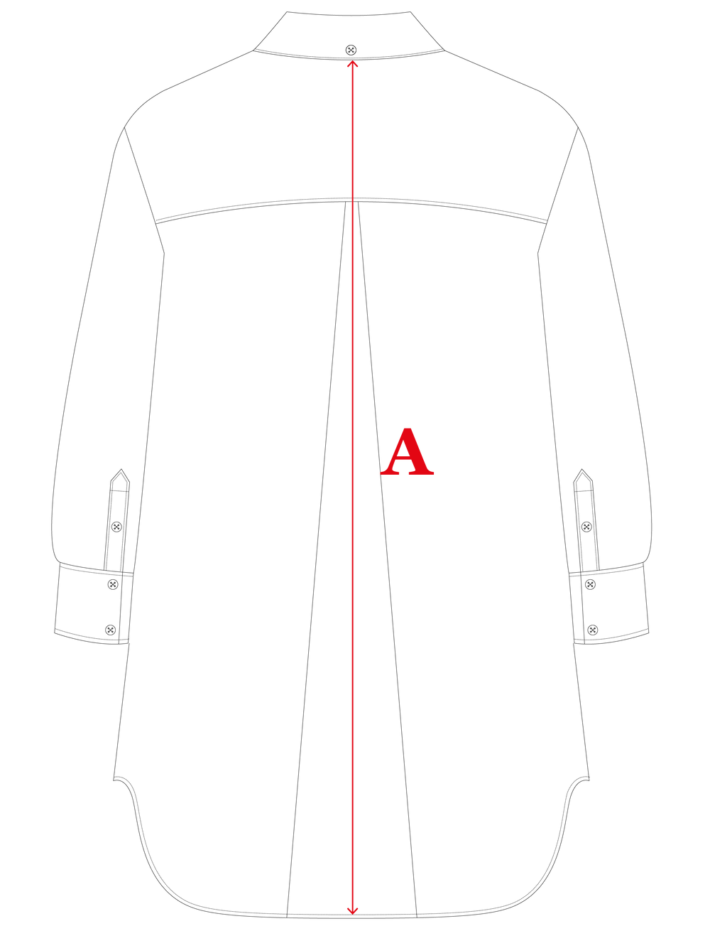 Coupe oversize - longueur en dessous des fesses - col chemise - bas chemise forme liquette - empiècement dos - pli creux milieu dos - manches montées