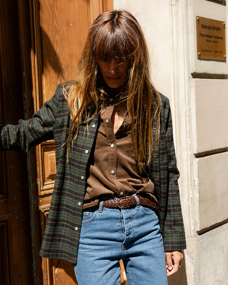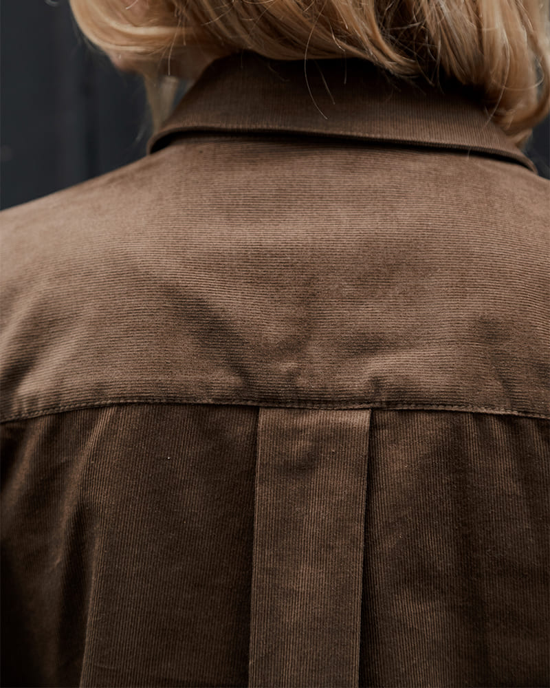 Notre chemise "saharienne" iconique déclinée dans une version en velours milleraies marron inspirée du vestiaire masculin mais tellement féminine ! Drapée d'une qualité 100% coton et intégralement tissée en Espagne.