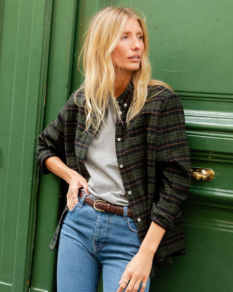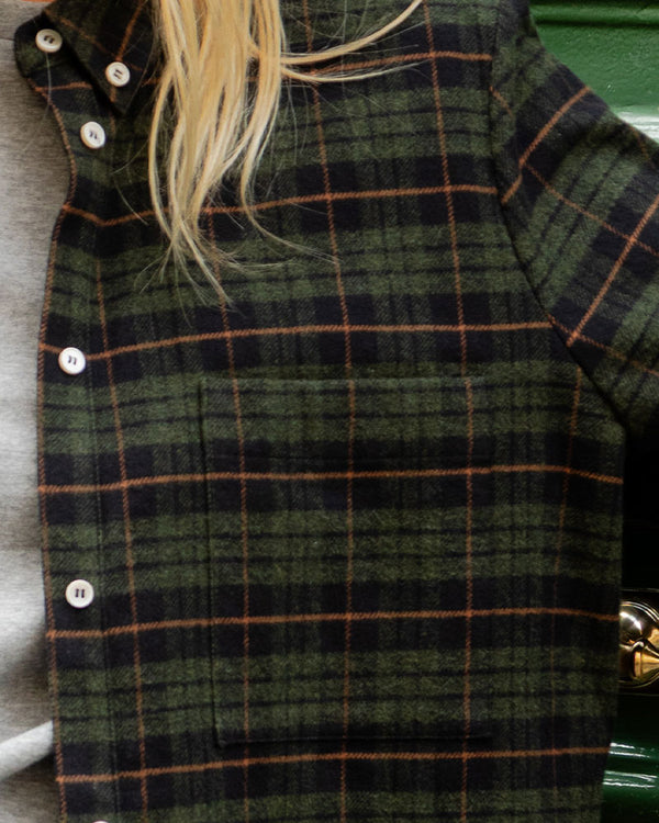 Notre chemise (ou surchemise) oversize déclinée dans une flanelle de coton à carreaux kaki et noir, sa coupe est large, c’est une variante plus oversize de notre Victor iconique, avec sa poche poitrine et ses boutons au col un nouvel iconique à bon mixer sans s’en lasser.