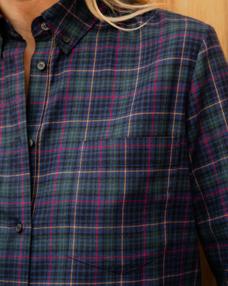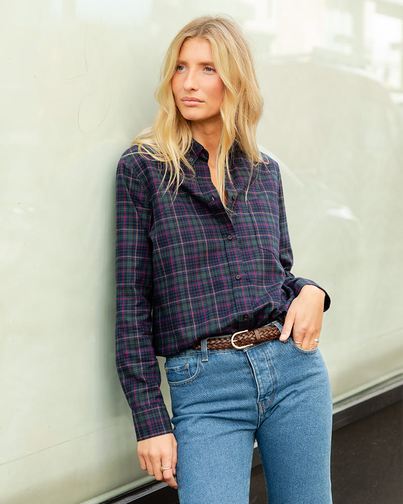 Notre chemise oversize iconique, à la coupe légèrement ample et résolument féminine, se distingue par ses détails délicats et son tombé parfait pour une élégance effortless, au quotidien comme en toutes occasions. Elle se drape d’une somptueuse popeline à carreaux bleu 100% coton très doux, certifié Oeko-Tex.