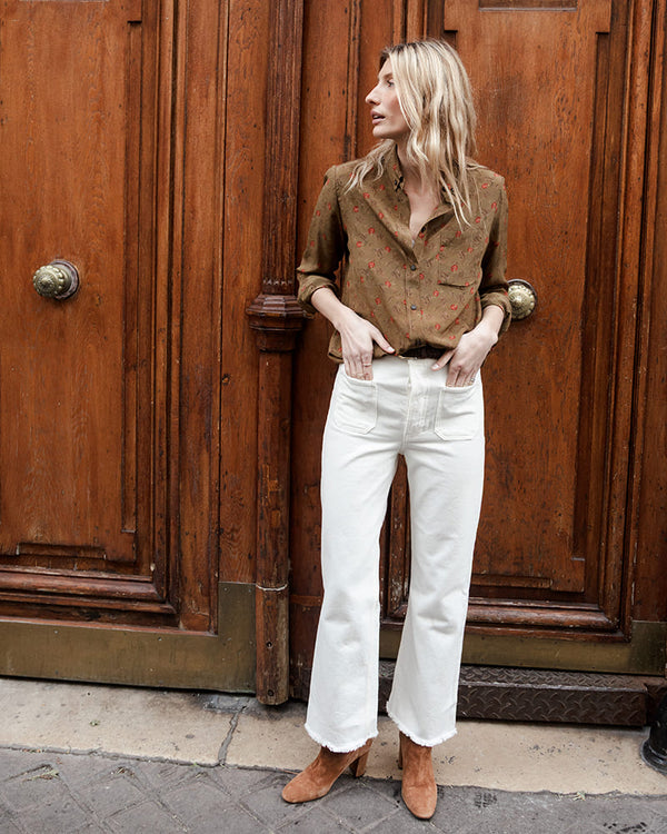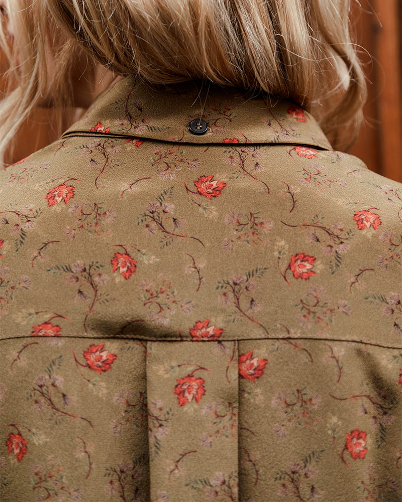 Notre chemise Iconique depuis 2018 à la coupe signature masculine, tellement féminine ! Victor est drapée de notre imprimé mandarin en 100% soie mat zéro gâchis certifié REACH.