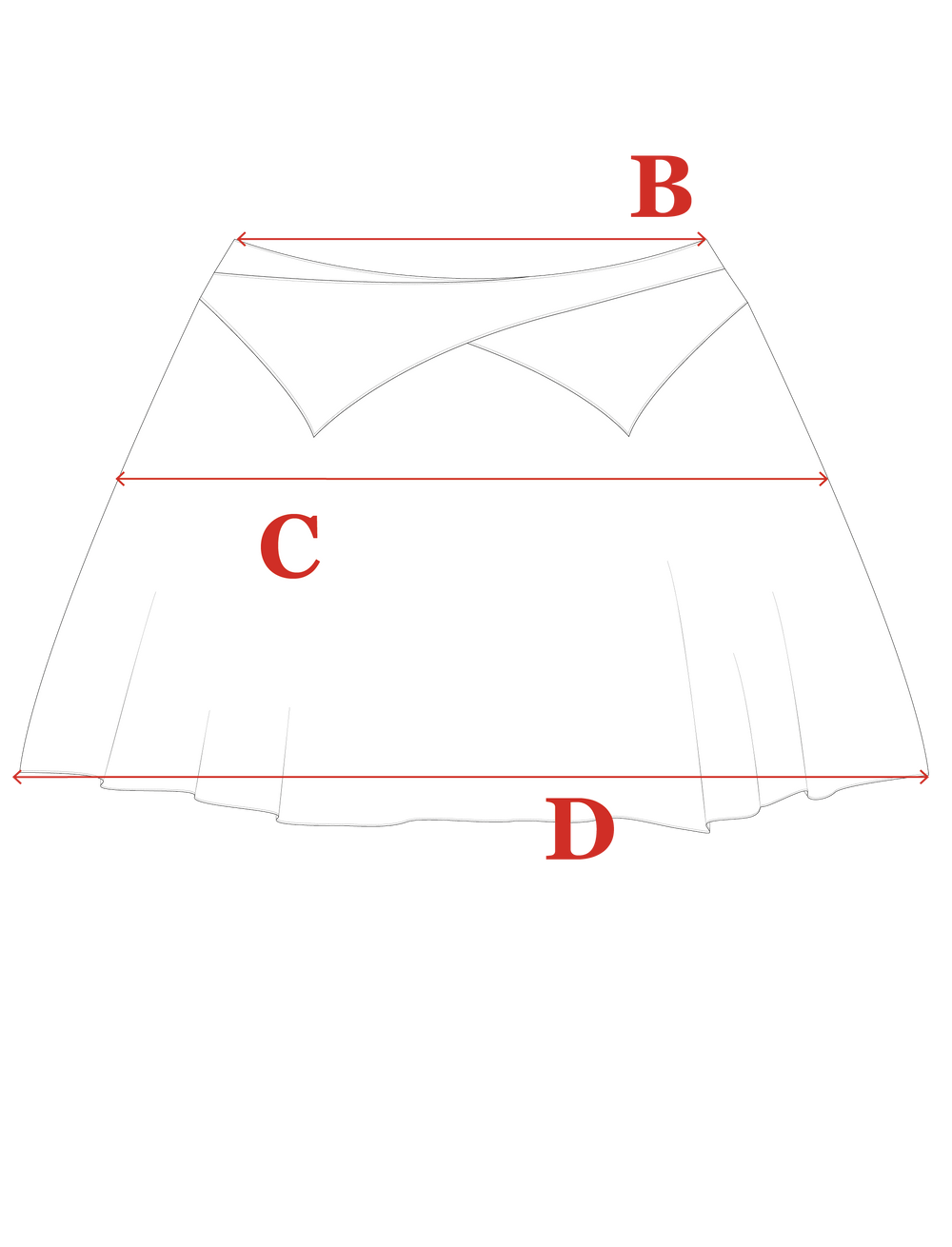Jupe courte - découpe en triangle sur le devant - ouverture avec un zip invisible