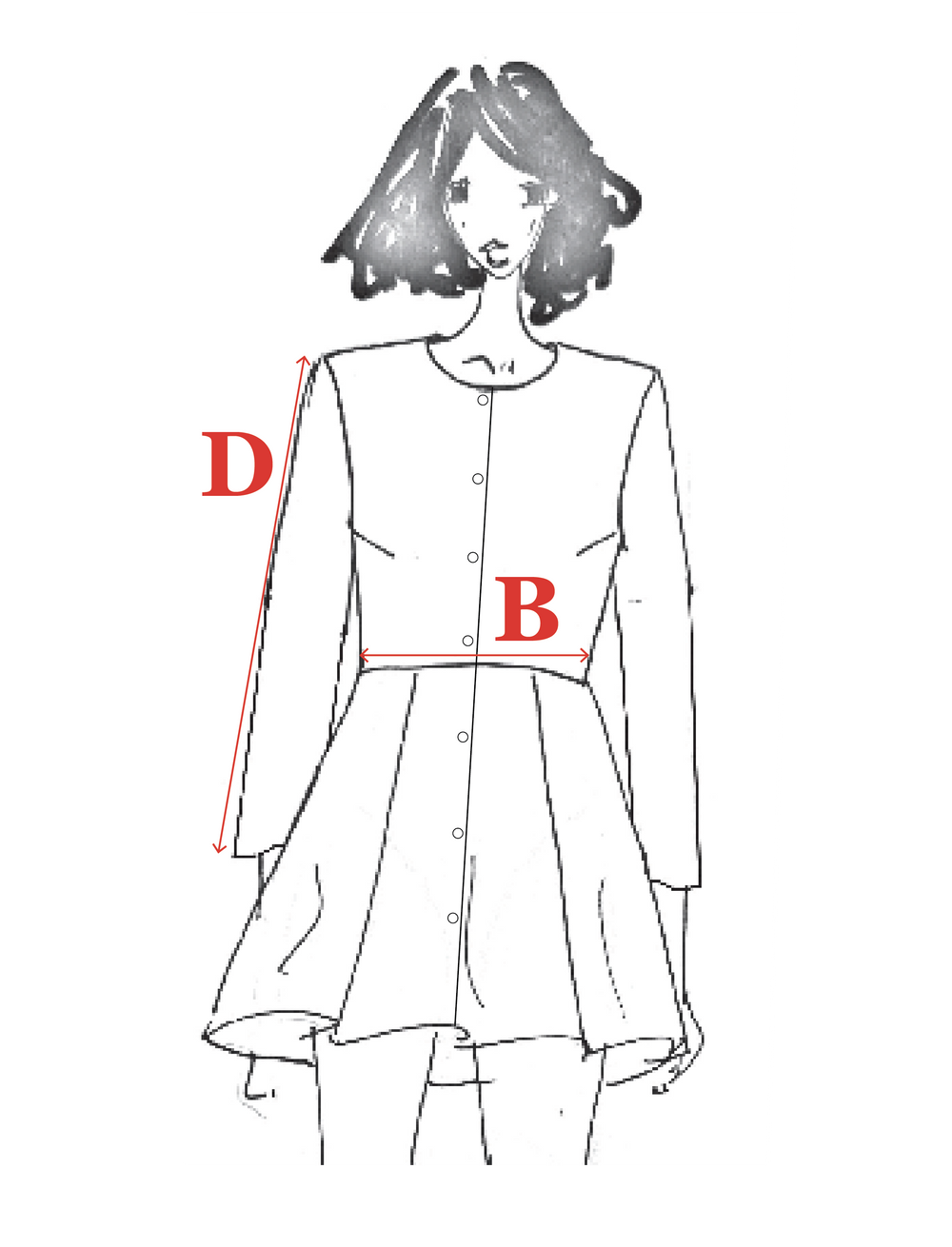 Robe courte - encolure ronde - pince poitrine - découpe taille avec passants - poches côtés - ouverture milieu devant avec boutons - manches droites au dessus du poignet - longueur milieu dos: 86cm