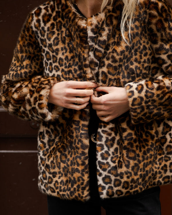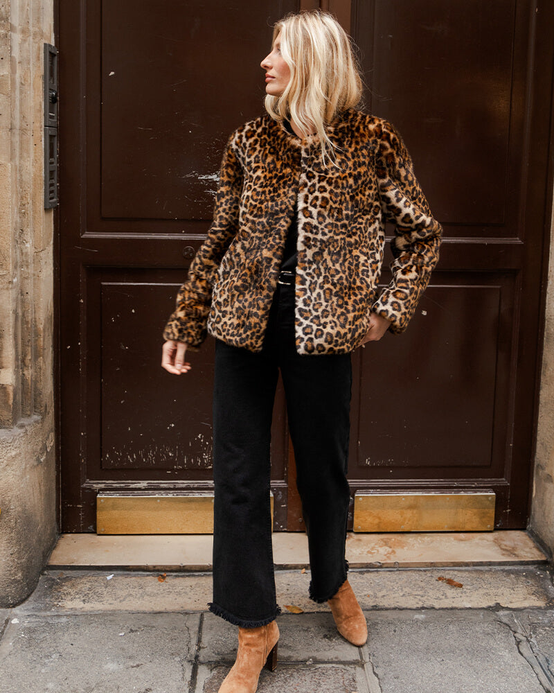 Notre veste se drappe cette saison avec une magnifique fausse fourrure léopard tissée en Italie, vous allez l'adorer ! Coupe légèrement oversize, se ferme avec des crochets intérieures, et des poches évidemment !