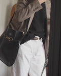 Notre nouveau sac fabriqué en France, au format idéal 37cm de large x 36 cm de haut, pratique, solide, et parfaitement équilibré. Il se décline dans un cuir lisse noir intemporel italien d'exception : au tannage végétal, sélectionné pour sa qualité et son impact maîtrisé. Une pièce hommage, à la grand-mère de Charlotte, qu'elle portait dans les années 70.