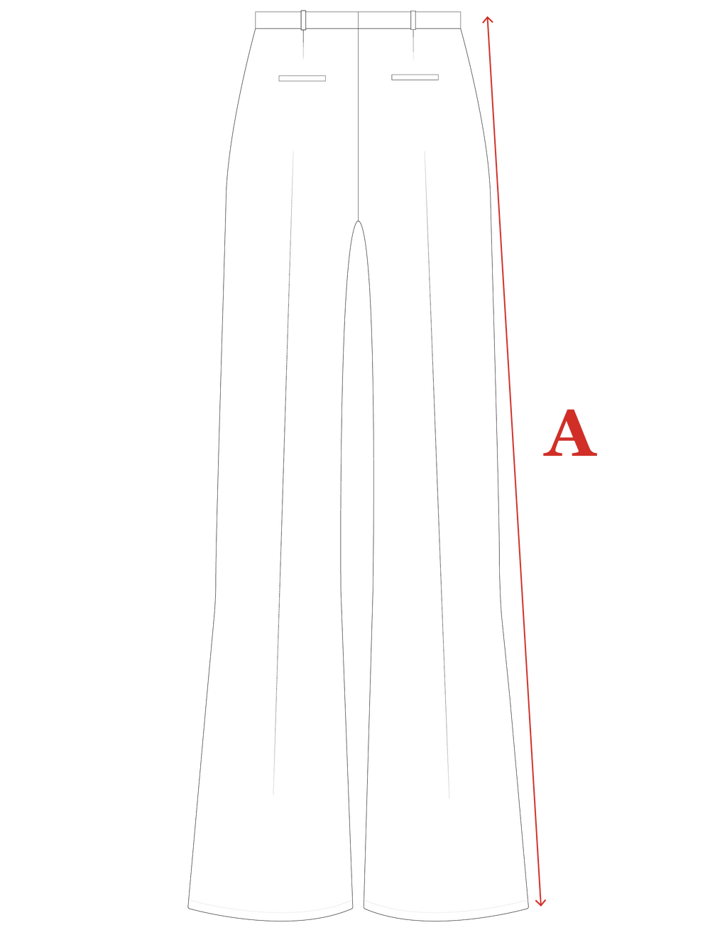Pour mesurer la longueur côté de la jambe: placez votre mètre ruban au niveau de votre taille. Mesurez jusqu’à la mesure donnée ci-dessus.